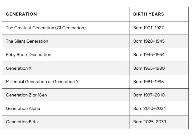 The specific birth year ranges that define each generational grouping vary substantially.