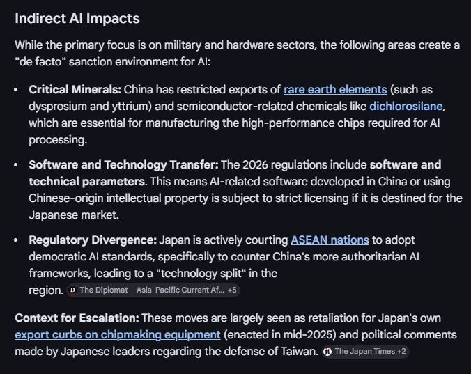 But unfriendly policies has led to Chinese sanctions on a variety of advanced technology such as “dual use” electronics and materials that might be used in weapons, but also in AI where Japan lags..